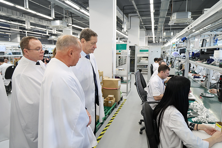 Первый заместитель Председателя Государственной Думы Федерального Собрания Российской Федерации Александр Жуков, первый заместитель Губернатора Новосибирской области Юрий Петухов, министр цифрового развития и связи региона Сергей Цукарь посетили одно из предприятий региона, производящее радиоэлектронику и телекоммуникационное оборудование.